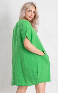 Buy ๐ HOXTON GAL Oversized V Neck Detailed Floral Print Mini ๐ Dress In Green And White โ๏ธ