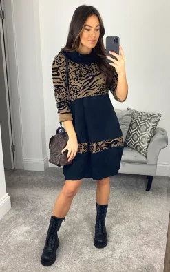 Cheap ๐ฅฐ CY Boutique Fine Knit Leopard Print Pattern Design Jumper ๐ Dress In Coffee Brown ๐ฏ