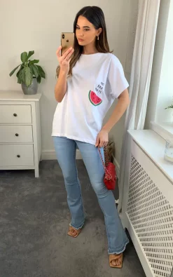 Best deal ๐คฉ Oops Fashion Eli Charcoal Grey Relaxed Fit Batwing Tshirt With Gold Slogan Print ๐ฅฐ