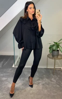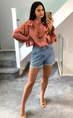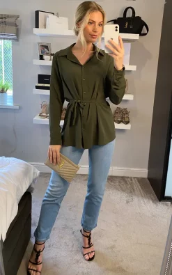 Coupon ๐ฏ HOXTON GAL Oversized Long Slevees Pleated ๐ Shirt Top With Matching Belt In Khaki โ