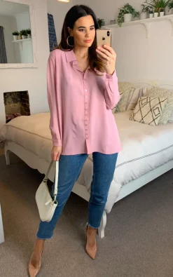 Brand new ๐ HOXTON GAL Oversized Tie Detailed ๐ Shirt Tunic With Long Sleeves In Burgundy ๐