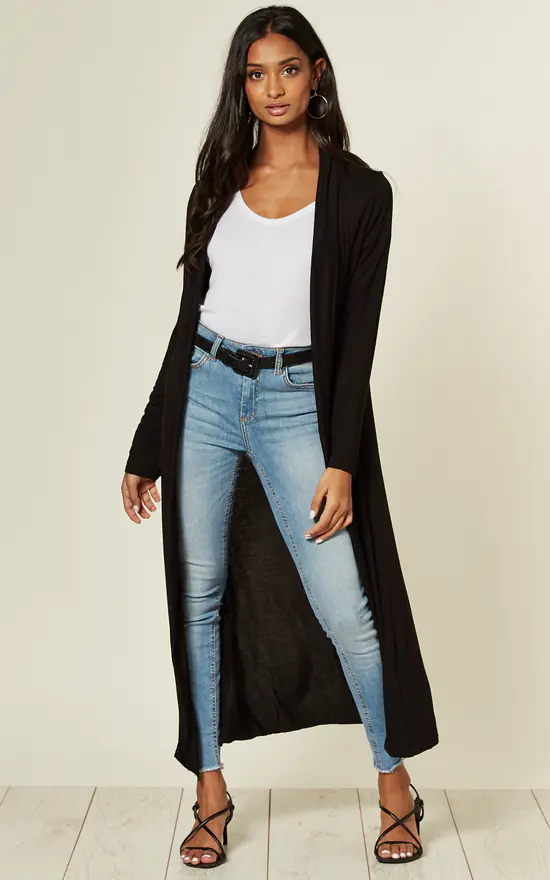 The Jersey Longline Cardigan In Black is an easy to wear style.