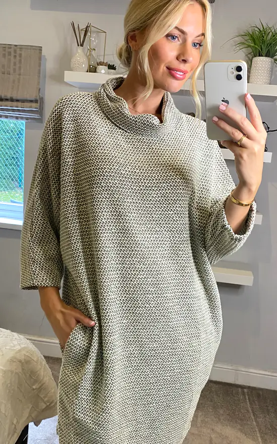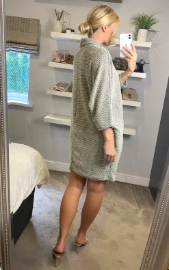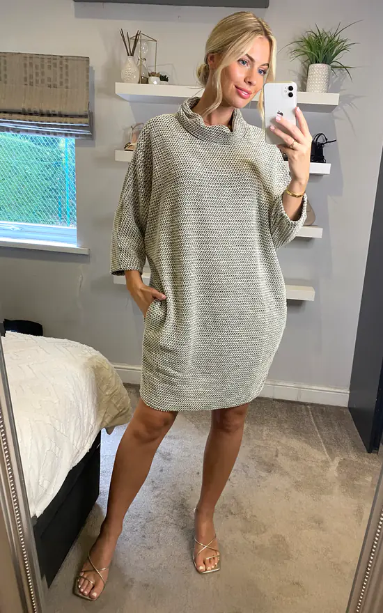 The cocoon dress has consistently been one of our best selling shapes for many seasons now, and we are confident that this particular style will be just as successful as its predecessors. Cut in a light boucle fabric, it is flattering and comfortable, just what you need in the winter months. Great for work.