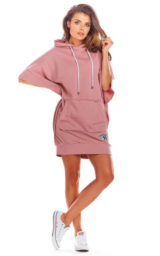On front dress has a number patch. With sneakers you will definitely create an interesting, holiday look.