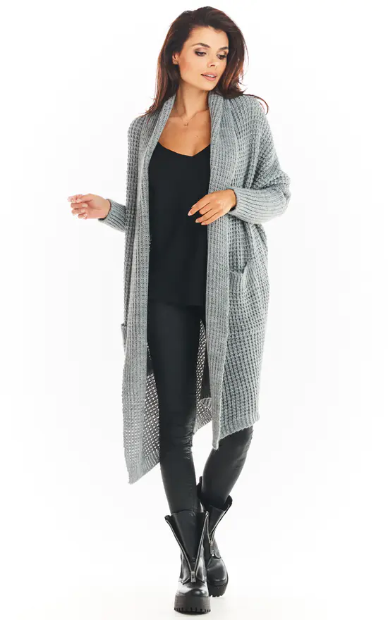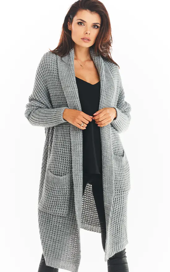 Cardigan without fastening, with long sleeves. It has large pockets.