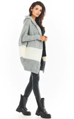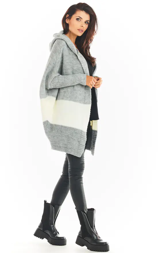 Soft and warm cardigan with long sleeves of oversized cut. It has a hood, on which a leather patch with our company logo.