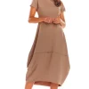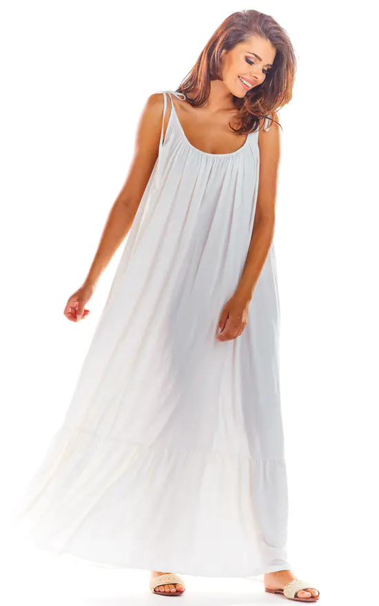 A loose oversized dress with a neckline at the back. It’s great when walking. Loose fit makes it fits any figure. The bottom of the dress is made of frill. The dress is perfect for the summer. Made of breathable and natural viscose.