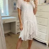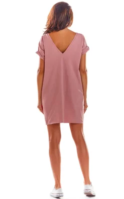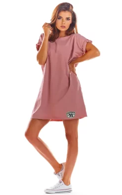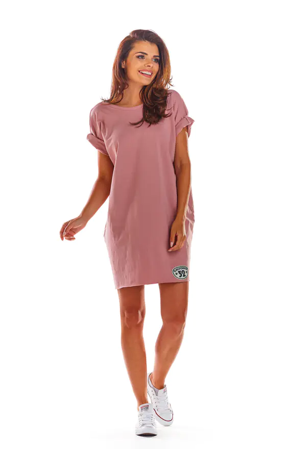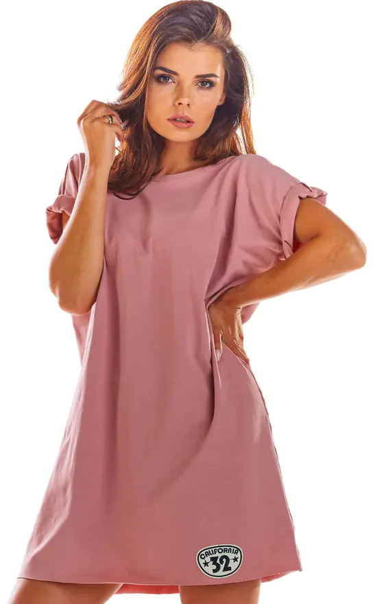Loose mini dress with short sleeves, made of pleasant fabric.