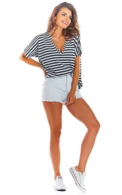 Loose shirt with a deep neckline. Perfect for everyday styling.