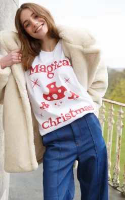 Super-soft women’s t-shirt with “Magical Christmas” slogan and vintage-style toadstools graphic.