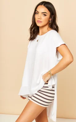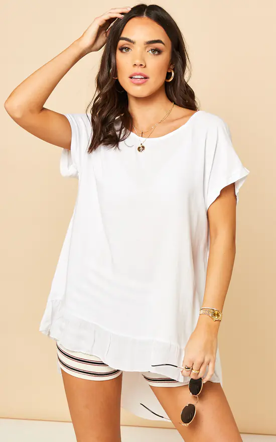Practical, comfortable and chic – this white dipped hem top is perfect for hassle-free everyday wear.