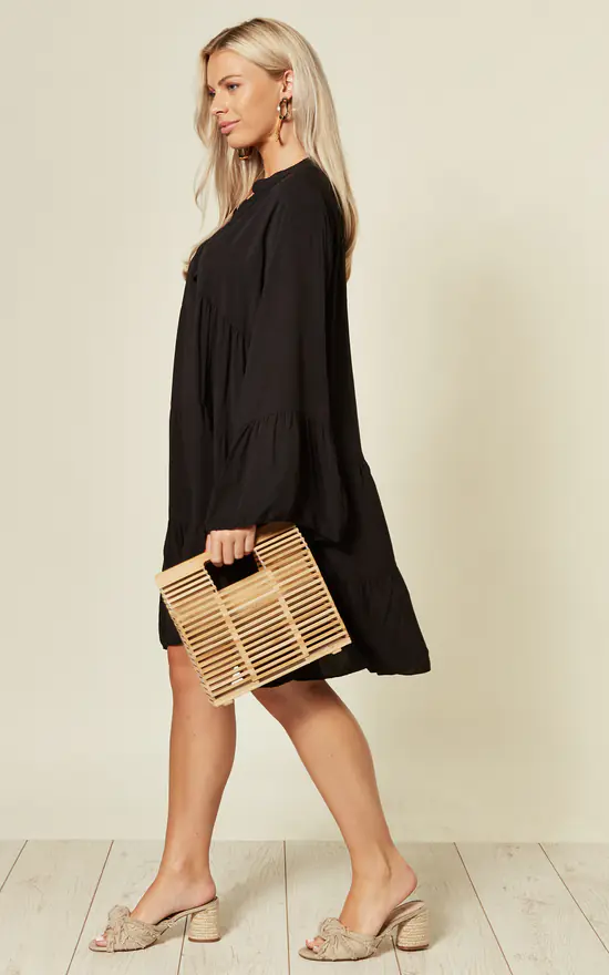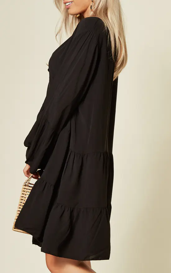 Exclusively by Blue Vanilla. Girl get ready to strut your stuff in this black dress. Every fashionable woman needs to have at least one animal print item in their wardrobe like this ,add some lace up heels and gold hoops for a luxe look.