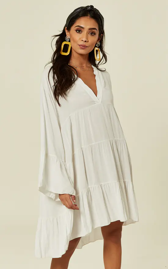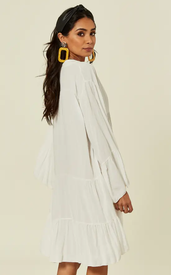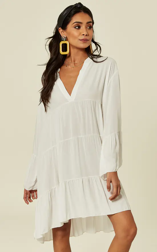 Exclusively by Blue Vanilla. Girl get ready to strut your stuff in this white dress. Every fashionable woman needs to have at least one casual white item in their wardrobe like this ,add some lace up heels and gold hoops for a luxe look.
