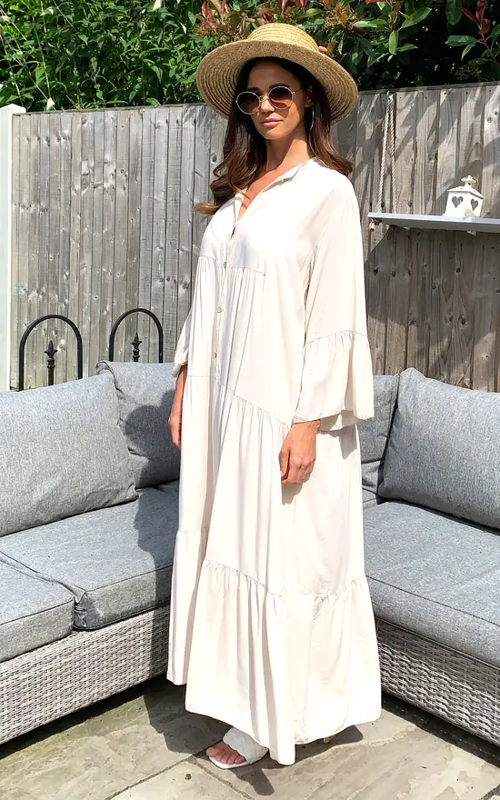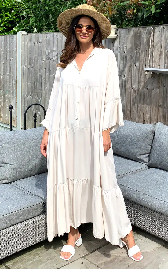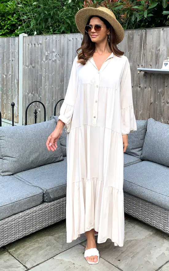 Exclusively by Blue Vanilla. Our button-through stone maxi dress will keep you cool and comfy in the warmest weather. Wear with sandals for a stylish holiday look, or team with flats for a relaxed weekend in the sunshine.