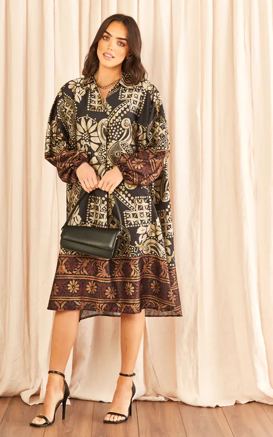 A shirt/dress that is perfect for casual evenings with friends. Long sleeves, collared neckline and a midi length. You can even style with waist belt for a more versatile look, and complete with cut out heels.