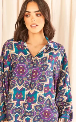 There’s a fun, printed, satin teal top waiting for you. This button down shirt is comfy and stylish, you can wear it both at your workplace and afterwards when going out for drinks. Skinny jeans and ankle strap heels will create a beautiful combo here π