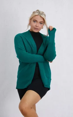 Our Green Long Sleeve Open Front Knitted Cardigan is part of our latest Knitwear & Cardigans collection. A thick cable knit material with dropped shoulders, fit long sleeves. Open front and the knit pattern is unique to make it different Cardigans for women, great for all kinds of occasions.