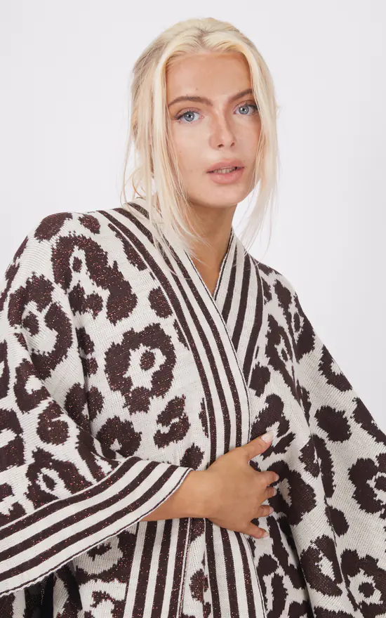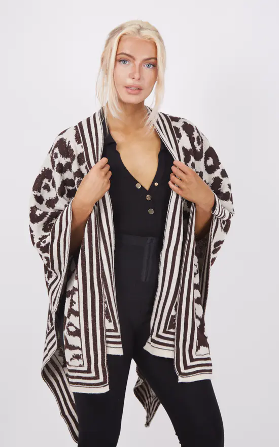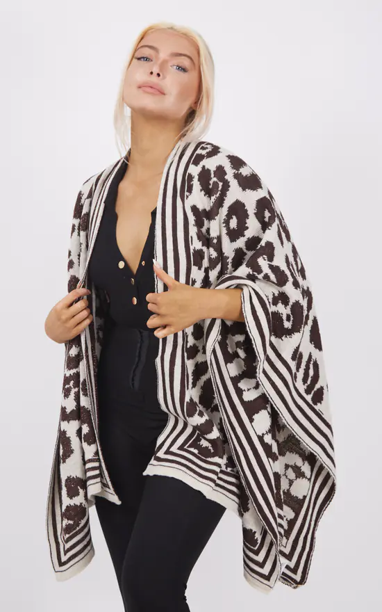 Our Off White and Brown Animal Print Poncho is part of our latest Poncho collection and will keep you warm and looking stylish during winter nights. Featuring an open poncho that fits sizes 10-20.