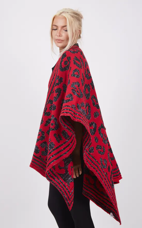 Our Red and Black Animal Print Poncho is part of our latest Poncho collection and will keep you warm and looking stylish during winter nights. Featuring an open poncho that fits sizes 10-20.