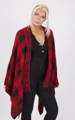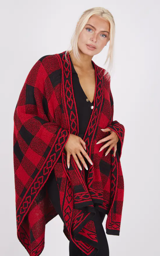 Our Red and Black Check Print Poncho is part of our latest Poncho collection and will keep you warm and looking stylish during winter nights. Featuring an open poncho that fits sizes 10-20.