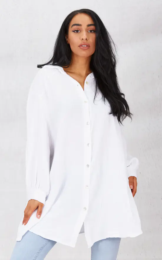 Our White Cheesecloth Oversized Shirt Dress is part of our latest Dress Collection!