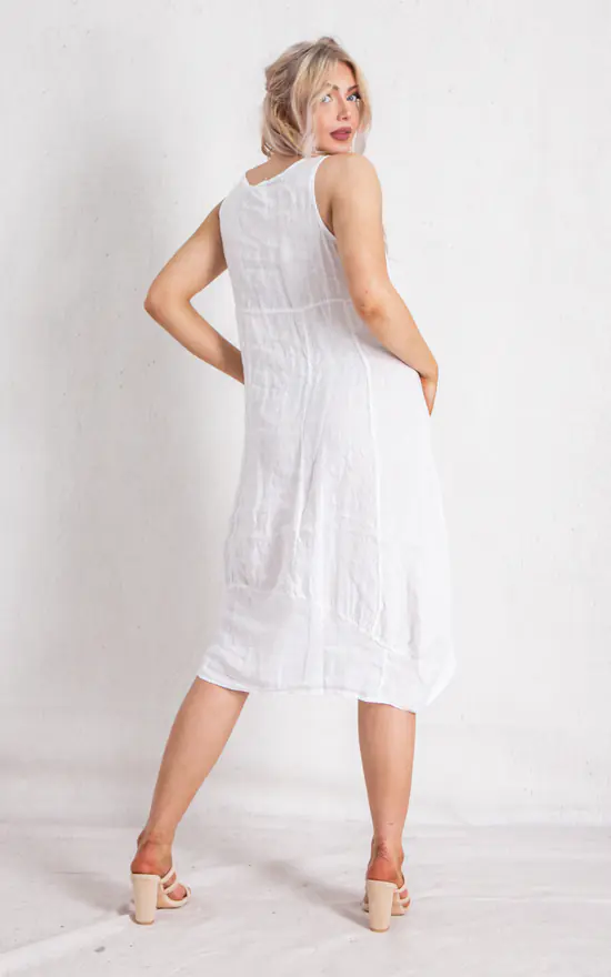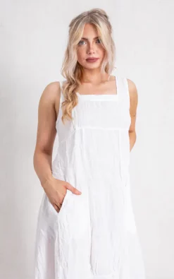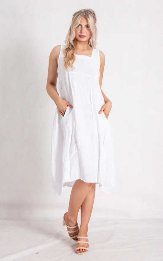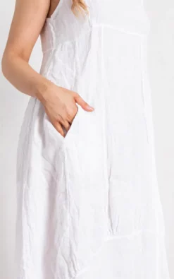 This White Linen Midi Dress is part of our latest dress collection. Featuring a lightweight linen material, thick strap, side pockets and finishing in a oversized relaxed fit.