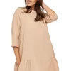 A chic dress in a loose style enriched with a cut-out ruffle at the bottom. The free cut will ensure the wearing comfort perfect for warm days, while the vivid colors will perfectly match any skin tone and type of beauty, ensuring a perfect look in any situation.