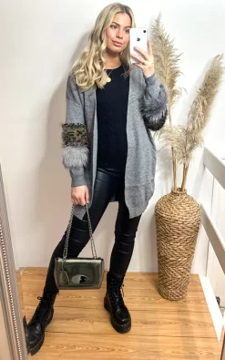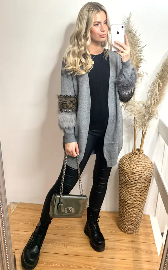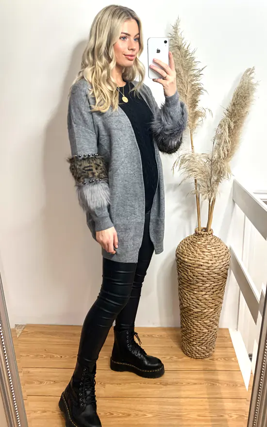 – Leopard print faux fur sleeves