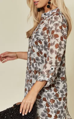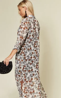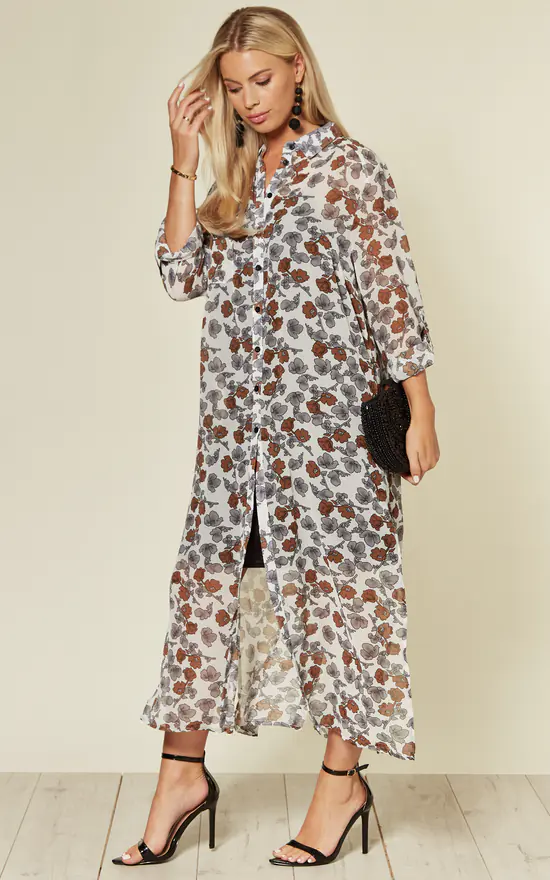 Cheapest πŸ›’ CY Boutique Long Sleeve Chiffon Maxi πŸ‘• Shirt In White Floral Print ❀️