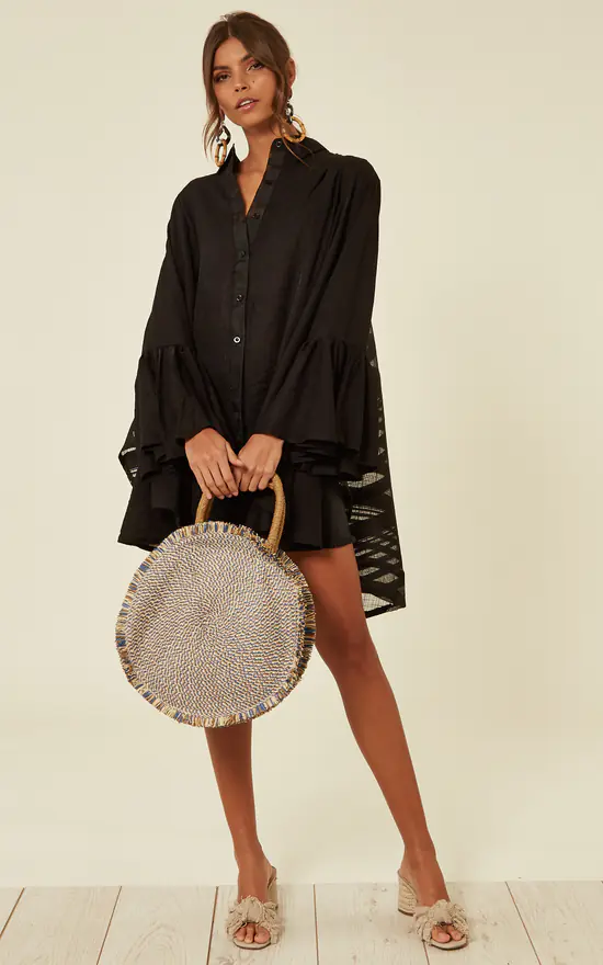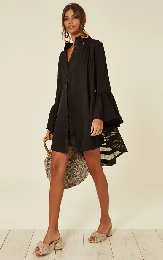 – Oversized frill sleeves shirt dress