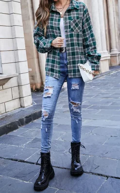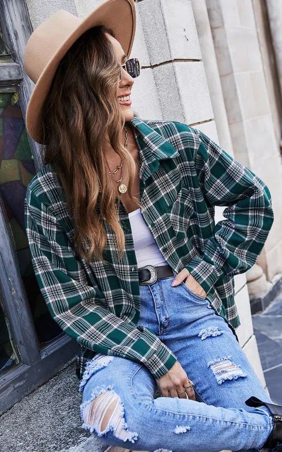 Cheap 🧨 FS Collection Oversized White Brushed Check Pocket Detail πŸ‘š Shirt In Green πŸ‘