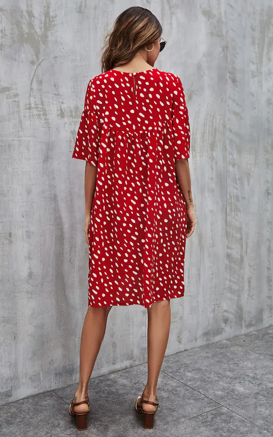 White Dot Short Sleeve Oversized Smock Dress In Red
