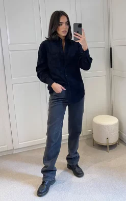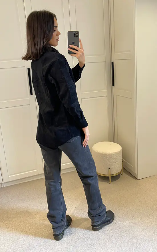 Black Corduroy Oversized Shirt This gorgeous shirt will look great in your wardrobe this season. Featuring a gold spot print pattern and a flattering cut, we here at Glamorous love this shirt! Style this shirt with jeans and some ruched mule heels for a fashion forward office outfit. Elevate the look with a satin midi skirt and strappy heels for a great date night look