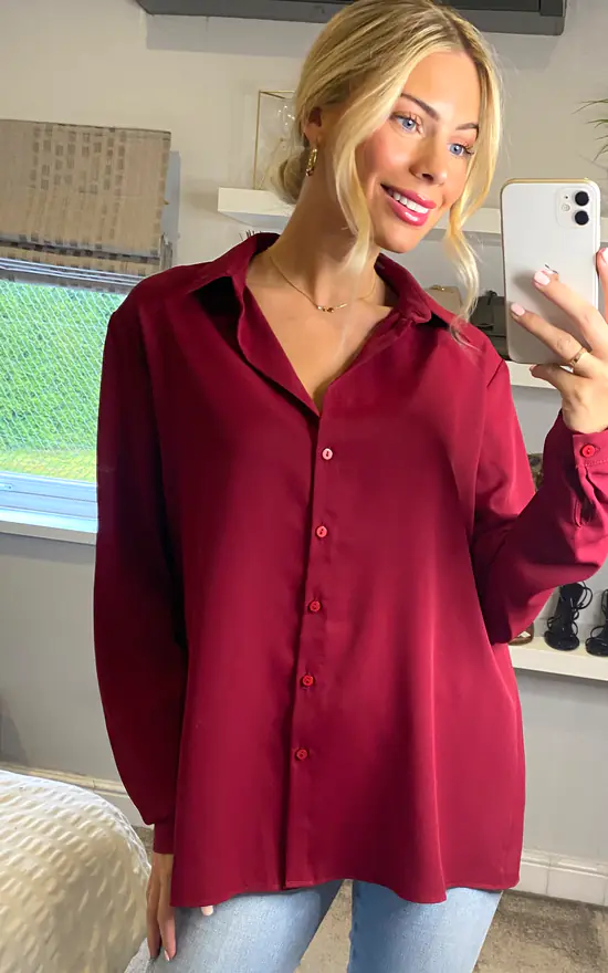 Deals ๐Ÿ”” HOXTON GAL Long Sleeves Relaxed Fit ๐Ÿ‘• Shirt In Burgundy โœจ