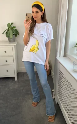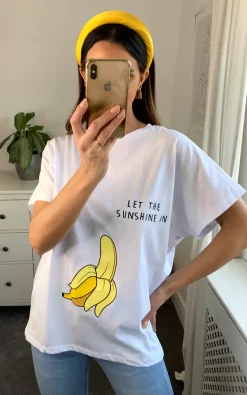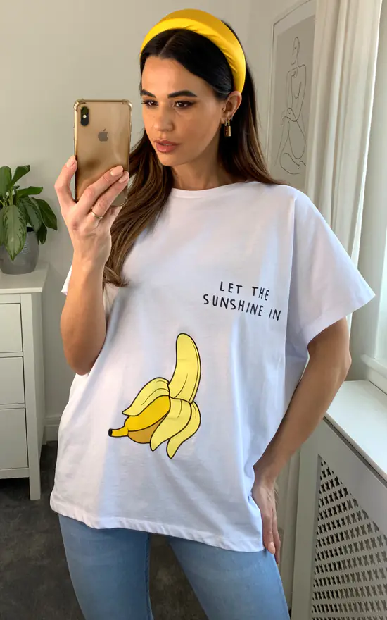 Our Oversized Banana T-Shirt in White will make you stay comfortable all day long. The print detail gives a personality to it and creates a fun and trendy look for you. Pair it with your fave jeans and trainers. Promise, you wonβt want to wear anything else this autumn!