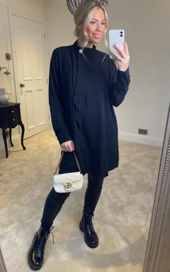Best Sale ๐Ÿ”” HOXTON GAL Oversized Brooch Detailed Long Sleeves Tunic Top In Black โœ”๏ธ