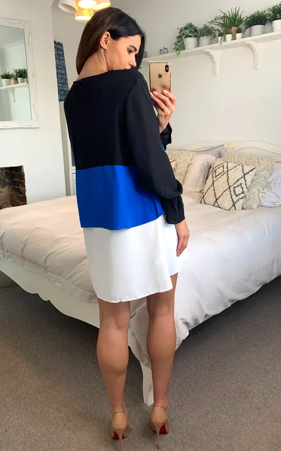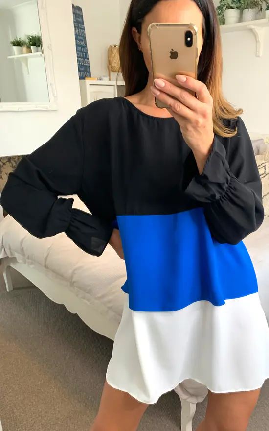 Oversized Colour Block Dress in Black, Petrol Blue and White