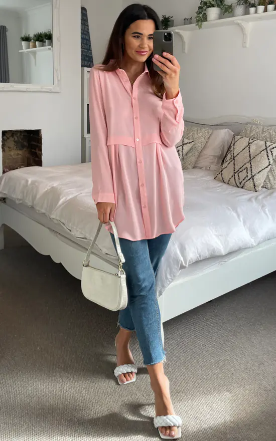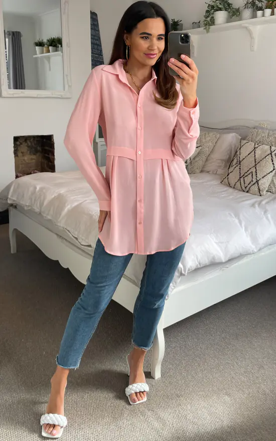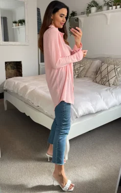 Flash Sale ✨ HOXTON GAL Oversized Long Sleeve Relaxed Fit 👕 Shirt In Pink ❤️