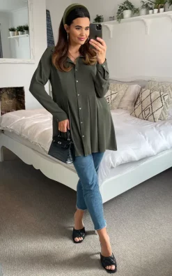 Discount ๐ŸŽ‰ HOXTON GAL Oversized Long Sleeves Pleated ๐Ÿ‘• Shirt In Khaki ๐Ÿ˜‰