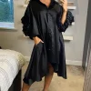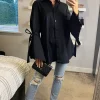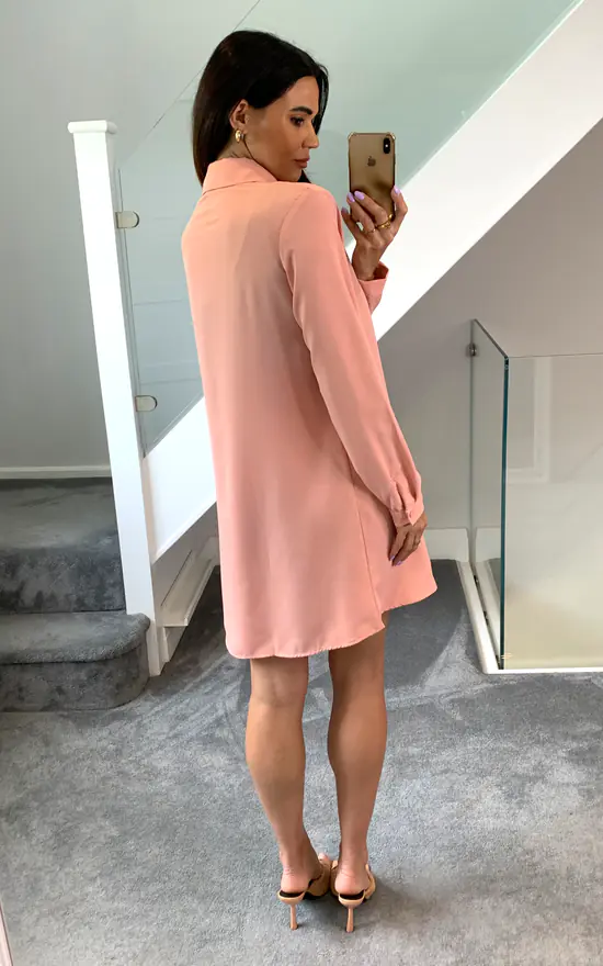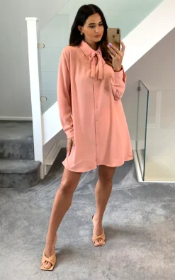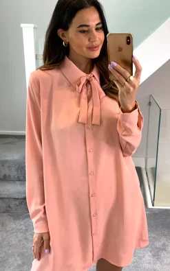 Discount ❤️ HOXTON GAL Oversized Tie Detailed Tunic 👚 Shirt With Long Sleeves In Pink ⌛