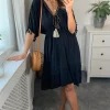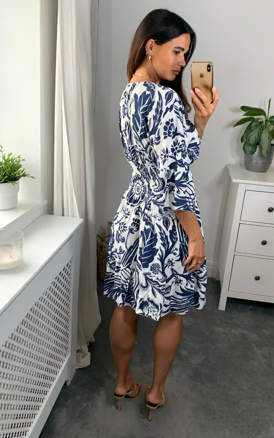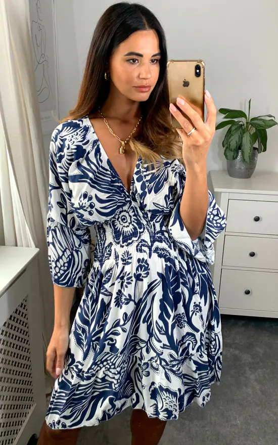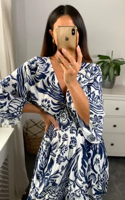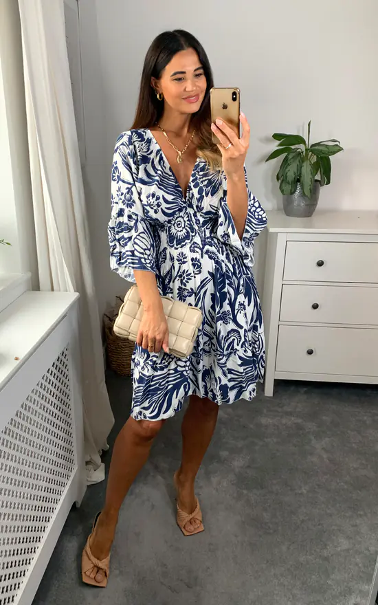 Beautiful Oversized V Neck Detailed Floral Print Mini Dress is a perfect dress for autumn, night out or just casual drinks with friends. You can also match it with high heels for parties!