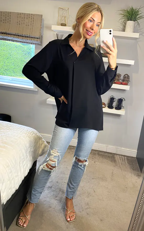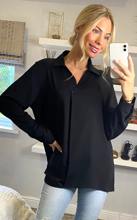 More standout than a classic blouse, thanks to the button details. These details are chic, striking and perfect for the weekend!