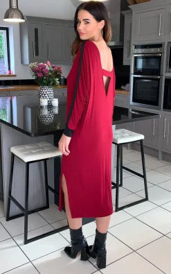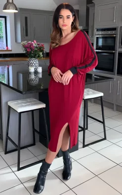 Relaxed Fit Dress with Black Line in Burgundy creates a charming aura around you!