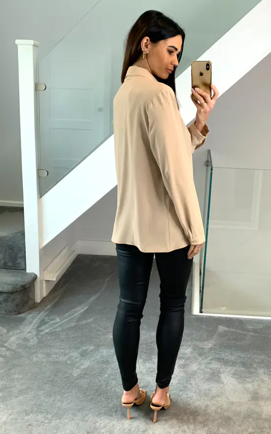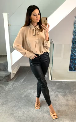Tie Neck Oversized Top with Long Sleeves In Cream is a lovely comfy oversized fit, it’ll keep you comfortable wherever you go: from lounging on the sofa to going out for coffee.