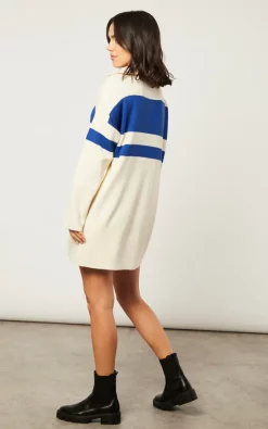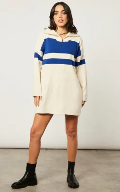 -striped, knitted, nigh neck, polo neck, oversized, sweater, jumper, tunic, knitwear, casual, winter, autumn, jumper dress, knitted dress.