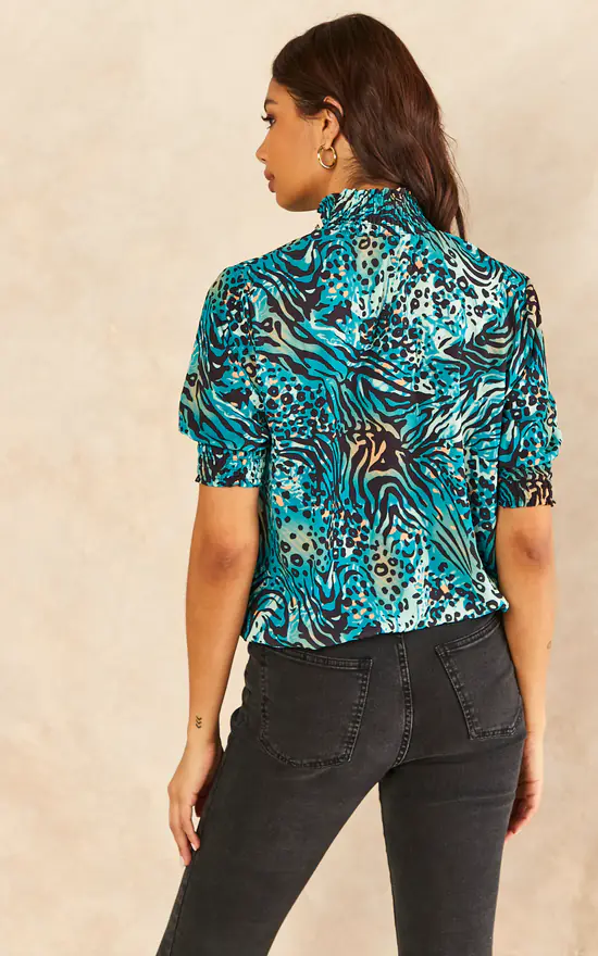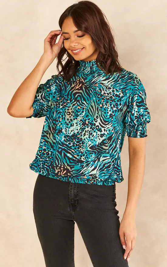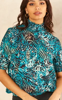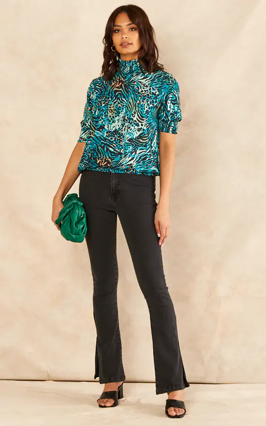 Deals ๐Ÿ’ฏ Jenerique High Neck T ๐Ÿ‘• Shirt In Multicolour Green Print ๐Ÿ””