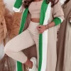 Stylish Longline Knitted Cardigan in Striped Print in Colour block. Long Sleeve Navy Midi Cardigan decorated with White and Green Stripes. Stylish accent in your Autumn-Winter Outfit.