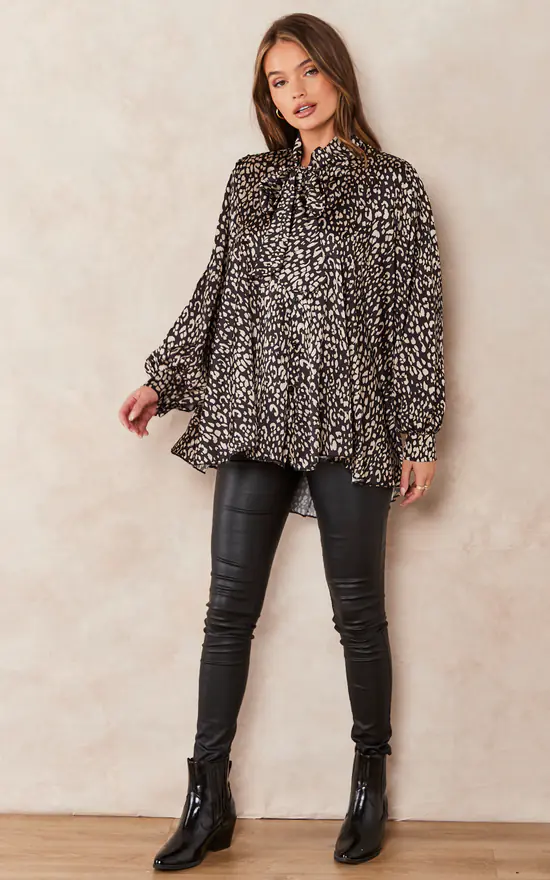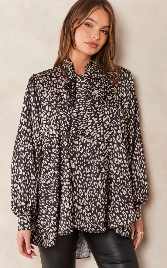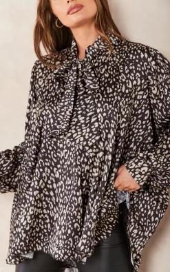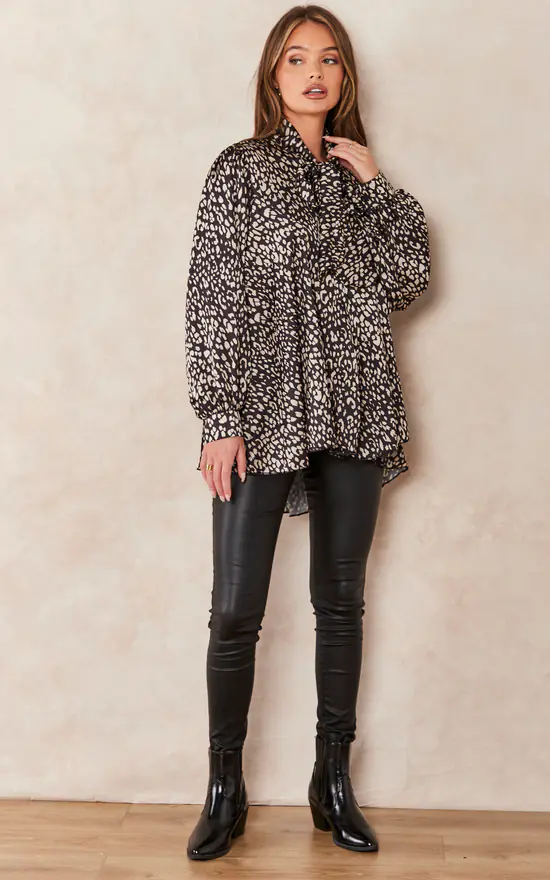 Discount ๐Ÿ˜€ Jenerique Oversize Bowl Neck Blouse In Black Leopard Print ๐Ÿฅฐ