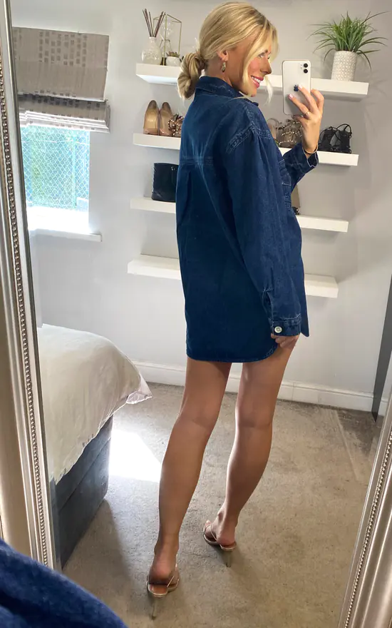 Dark Blue Wash Denim Oversized Shirt Dress by JMOJO