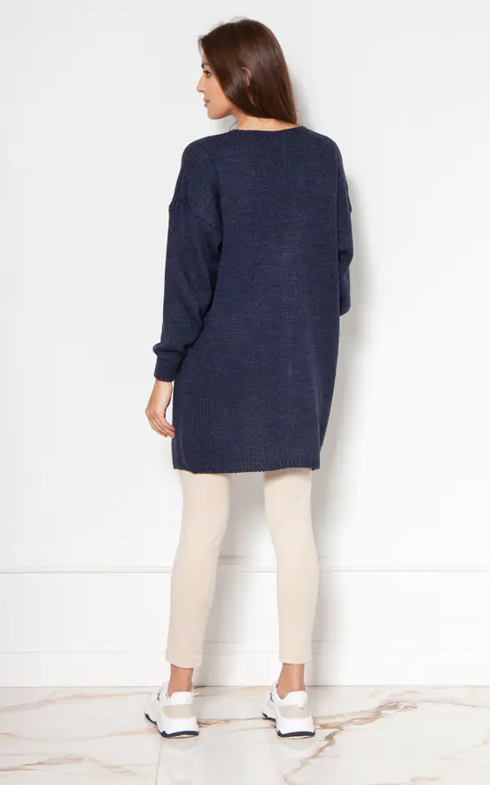 Sweater-ideal for minimalists – no belts, buckles, buttons, ruffles, decorations. Made with the simplest stitch of light and pleasant to the touch melange yarn. Long sleeves allow you to hide cold hands. It literally goes for everything, so you will be reaching for it over and over again.